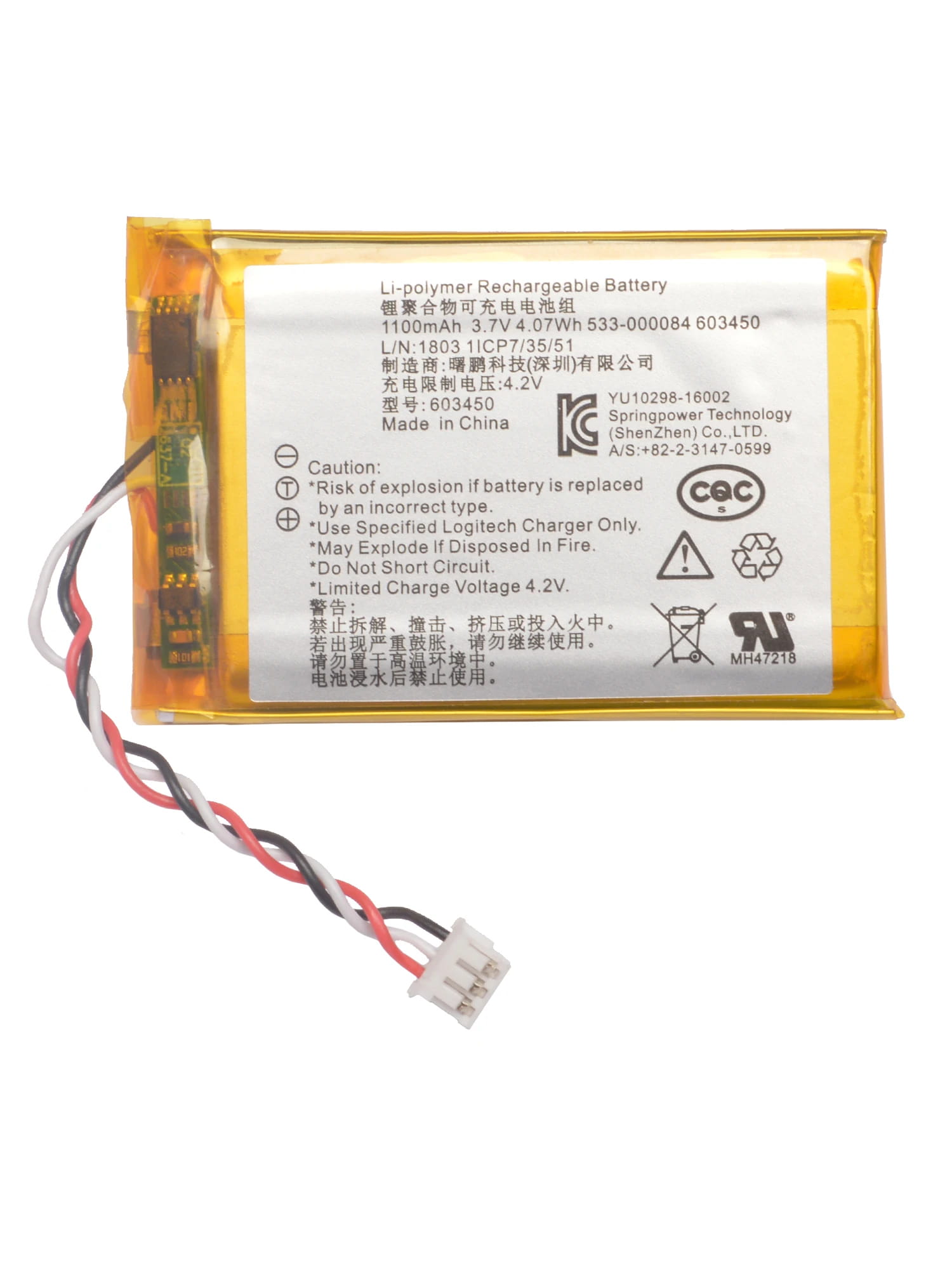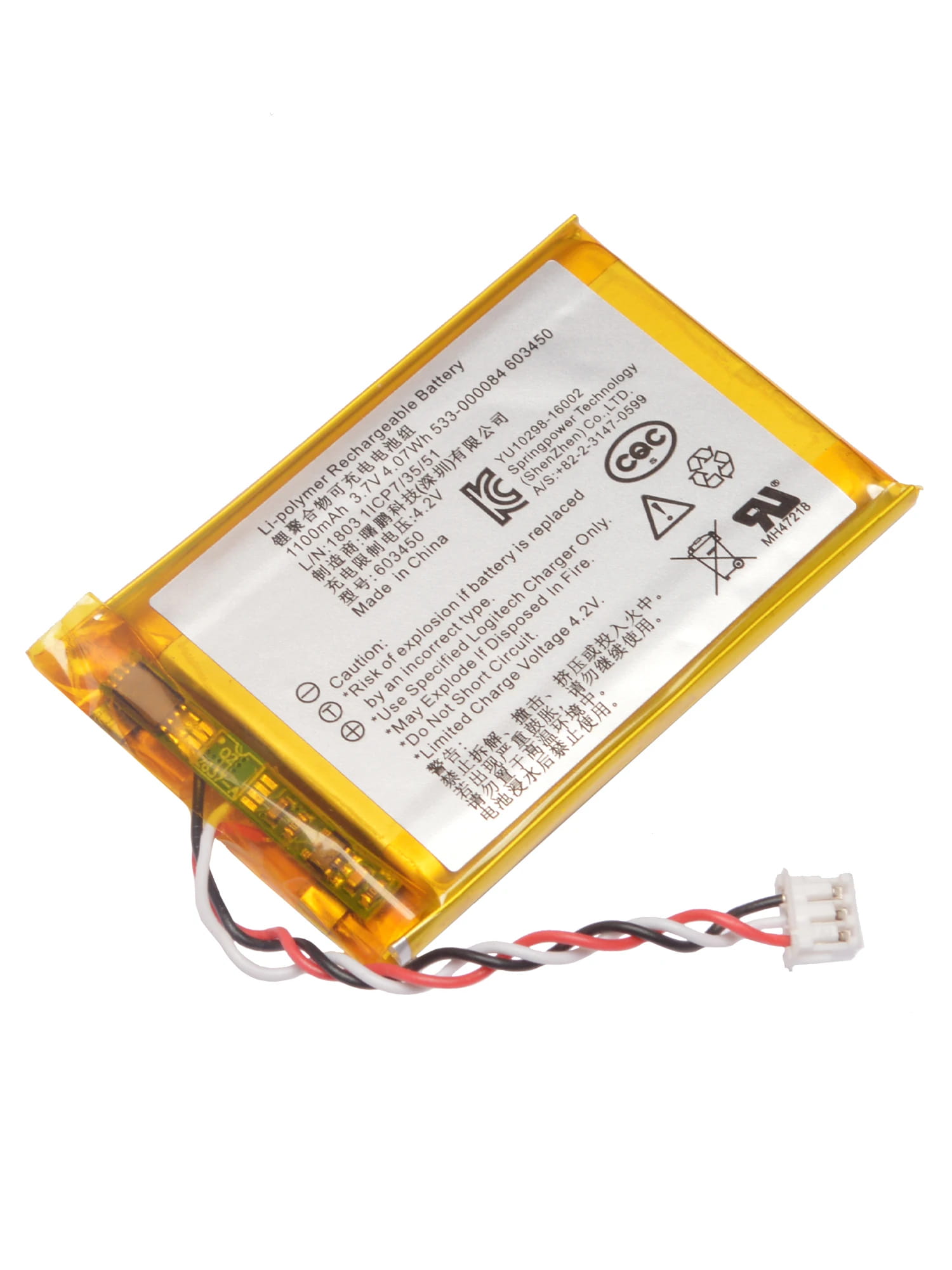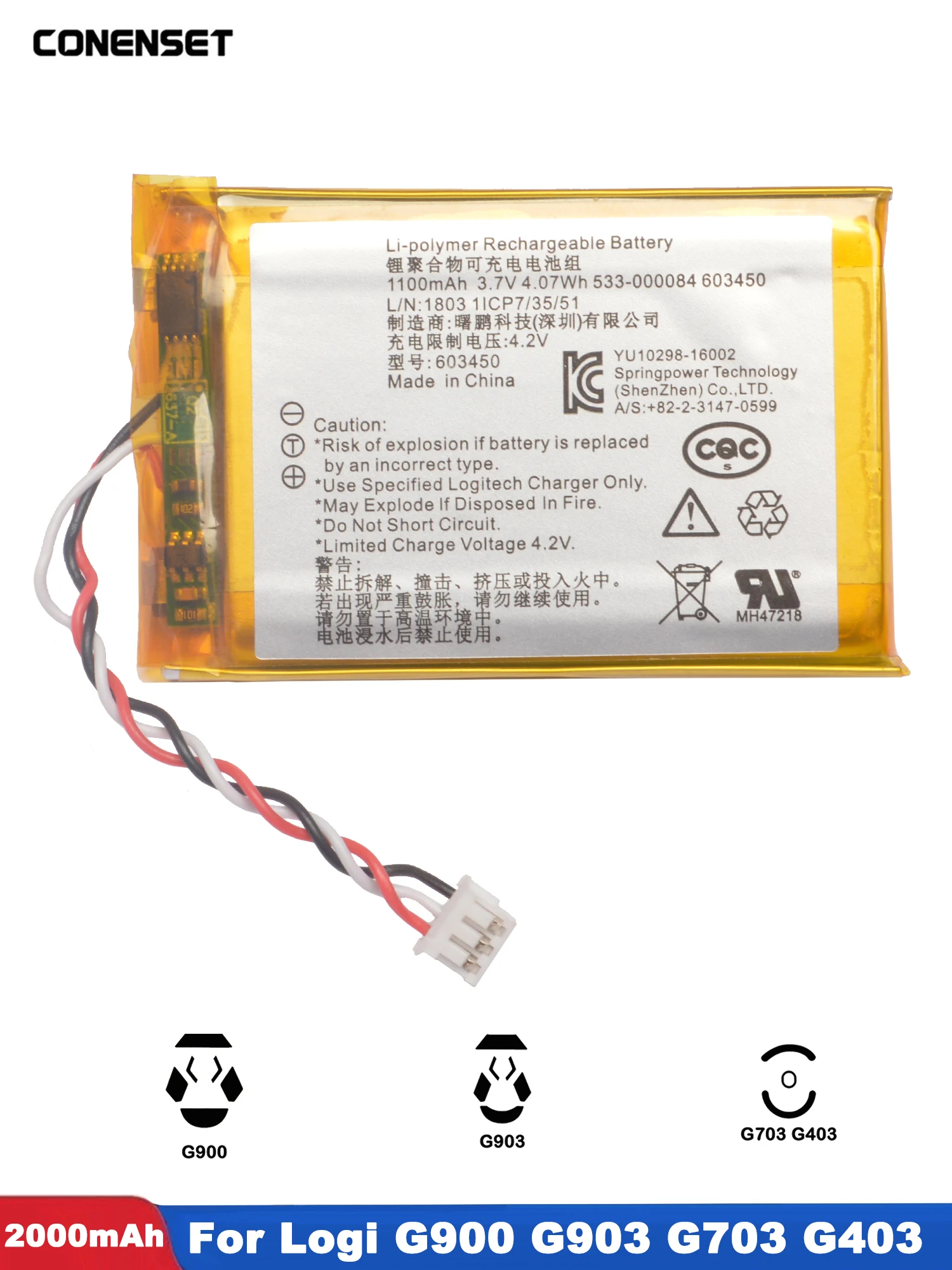 Ta bateria litowo-polimerowa 3.7V 1100mAh została stworzona specjalnie dla myszy Logitech G403, G703, G900, G903.
