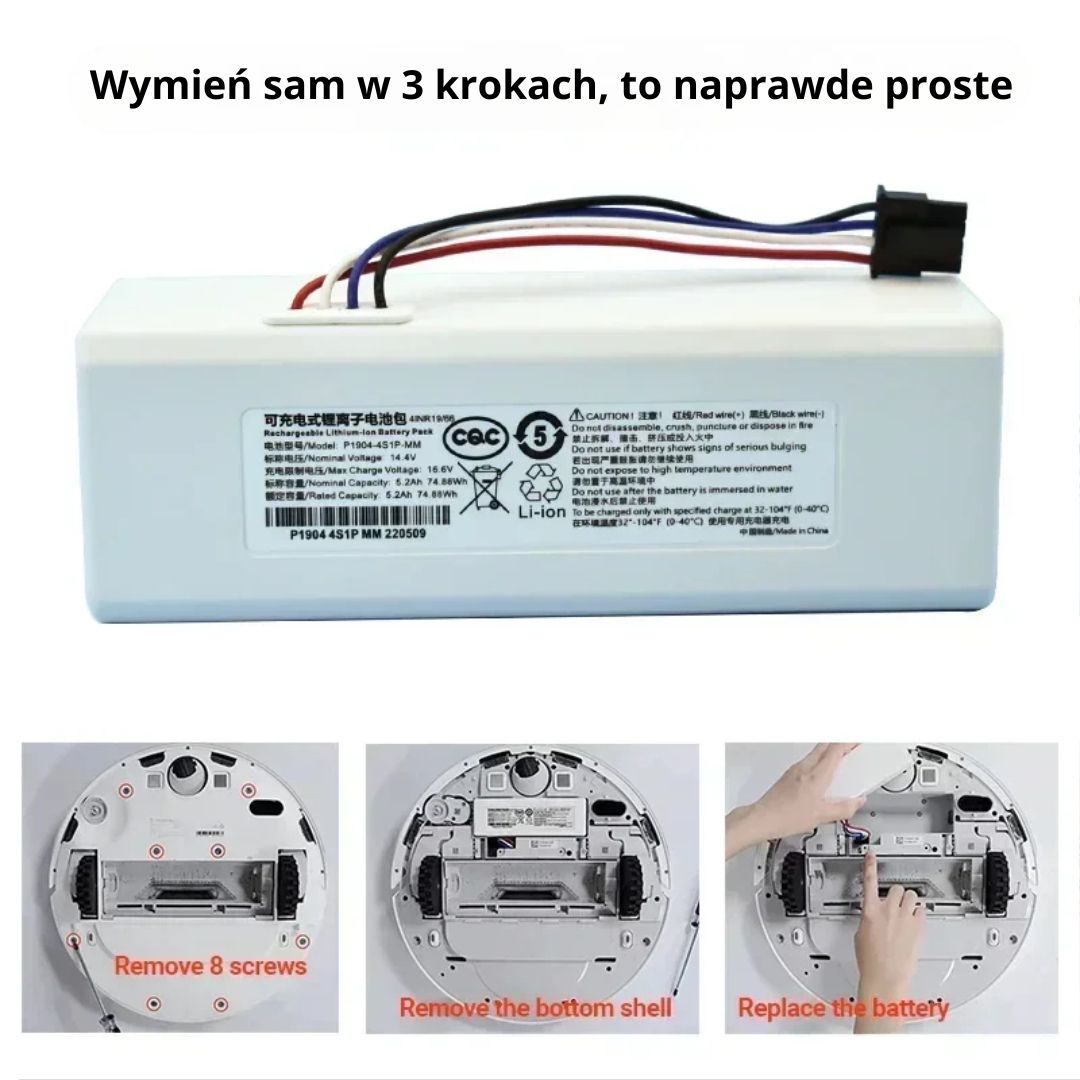 Nowa, wysokiej jakości bateria P2008-4S2P-MMBK to idealny zamiennik dla zużytego akumulatora w Twoim robocie sprzątającym Dreame. Dzięki pojemności aż 12800 mAh zyskujesz nawet dwukrotnie dłuższy czas pracy w porównaniu z fabrycznym ogniwem.