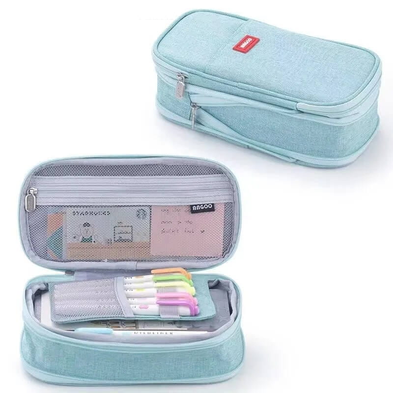Piórnik Kawaii – Błękitny duży organizer szkolny z przegródkami