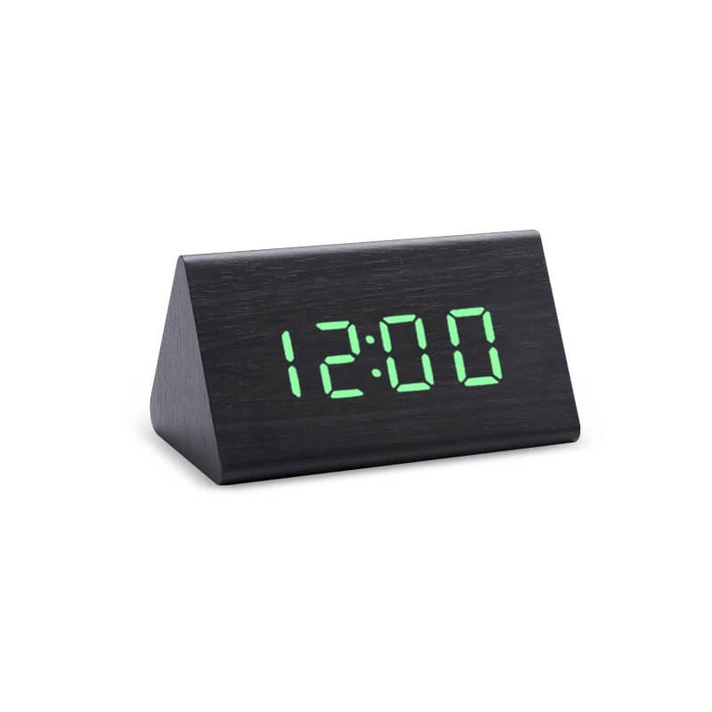 Triobu - Elegancki drewniany zegarek budzik na baterie - cyfrowy - Czarny - zielony LED